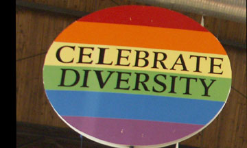 While every day is Pride Day at the booth, we celebrate Pride Day on the opening Friday of the Fair, the unofficial "gay day" at the Fair. Our booth is always visible with our Celebrate Diversity sign above the booth, and we added festive pride banners around the booth to make it more visible.