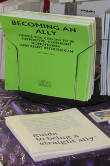 We have literature from PFLAG, and from PFLAG's new Straight for Equality Project, the Guide to being a straight ally.