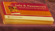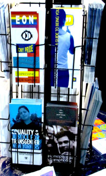 We have literature from PFLAG, and from PFLAG's Straight for Equality Project, the Guide to being a straight ally for visitors.